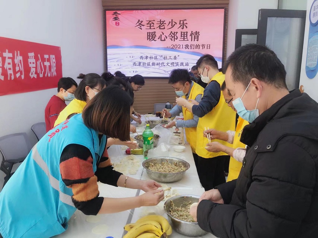 为了推动“我为群众办实事”实践活动取得实效,让失独家庭的群众过上一个温暖愉快的冬至节,12月21日,甘肃工程咨询集团志愿者服务队联合敦煌路街道西津社区,组织辖区失独家庭11名居民群众举办了“冬至老少乐 暖心邻里情”活动,为他们奉上了一道温暖祥和的饺子“盛宴”。