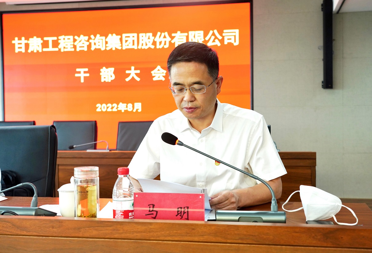 8月2日,甘肃工程咨询集团召开干部大会,宣布省委关于集团党委主要负责人任免决定:马明同志任万搏app登录入口党委书记,宋忠庆同志不再担任万搏app登录入口党委书记职务。