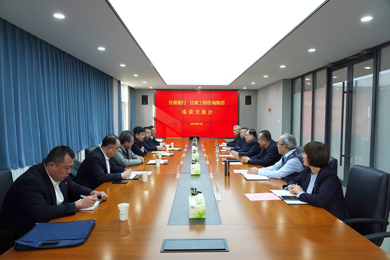 1月15日,甘肃工程咨询集团党委书记、董事长张佩峰与来访的甘肃银行党委书记、董事长刘青就深化银企合作座谈交流。甘肃银行领导王锡真、杜晶,甘肃工程咨询集团领导成少平参加。
