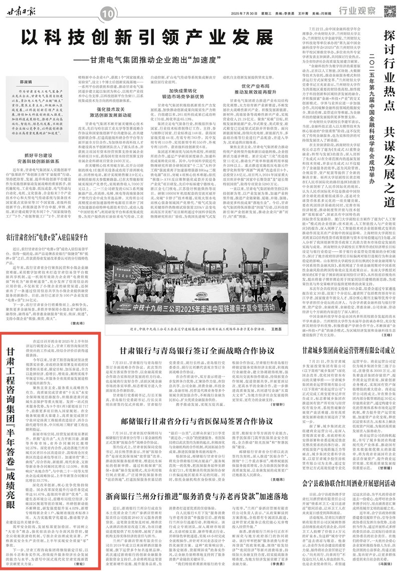 下一步,甘肃工程咨询集团将继续锚定目标,以昂扬斗志和务实作风,持续提升服务经济社会发展的能力与水平,为谱写中国式现代化甘肃实践新篇章贡献更大力量。