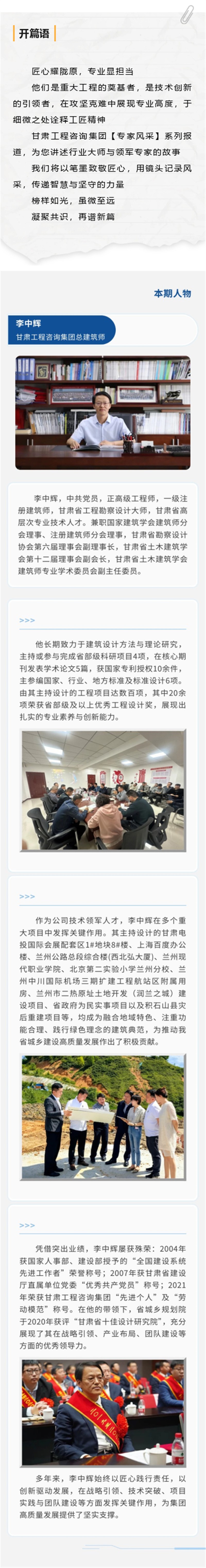 《专家风采》专题报道③ | 李中辉:以匠心“筑迹” 绘城市温度