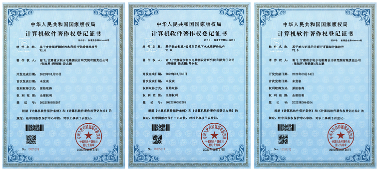 喜报!甘肃省水利水电勘测设计研究院有限责任公司三项计算机软件获得著作权登记证书