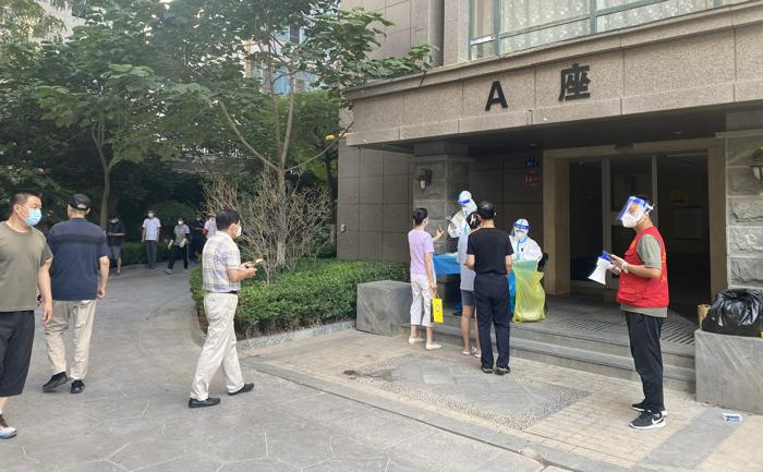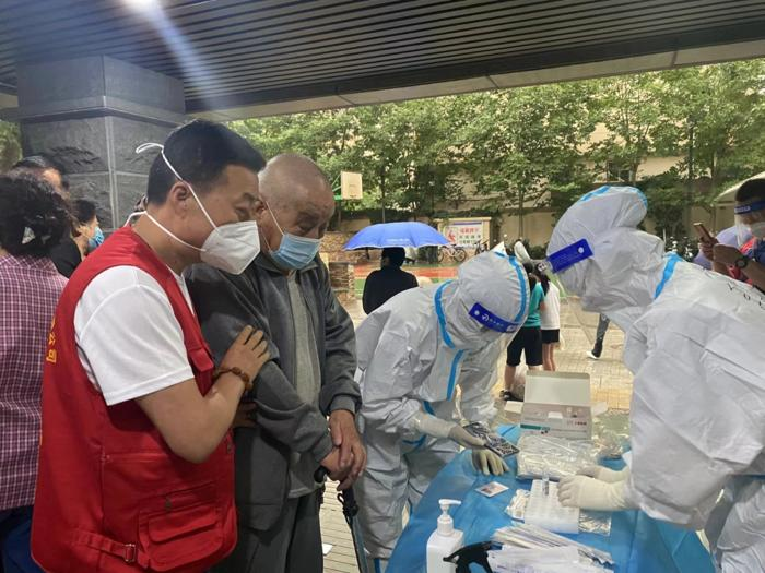 盛元小区一共有5个单元,500多户,2000多人;新港城小区属于城关区比较大的居民小区,分为ABCDE五个区,共有300多个单元,5200多户,16000多人居住。面对这些情况,陈万国、李朋袀和白万景等志愿者冲在前面,维持检测秩序,布置核酸检测点位,分发甘肃抗疫中药包,投放楼栋垃圾,汇总登记问题并与社区和医务人员沟通逐一解决。接受核酸检测的队伍中,有上至八九十岁的老人,下至三四岁的孩童,还有行动不便的病人,他们总是无微不至,耐心引导,尤其在遇到一些行动不便的老人和病人时,他们主动上前搀扶,把贴心的温暖送给每一名群众。