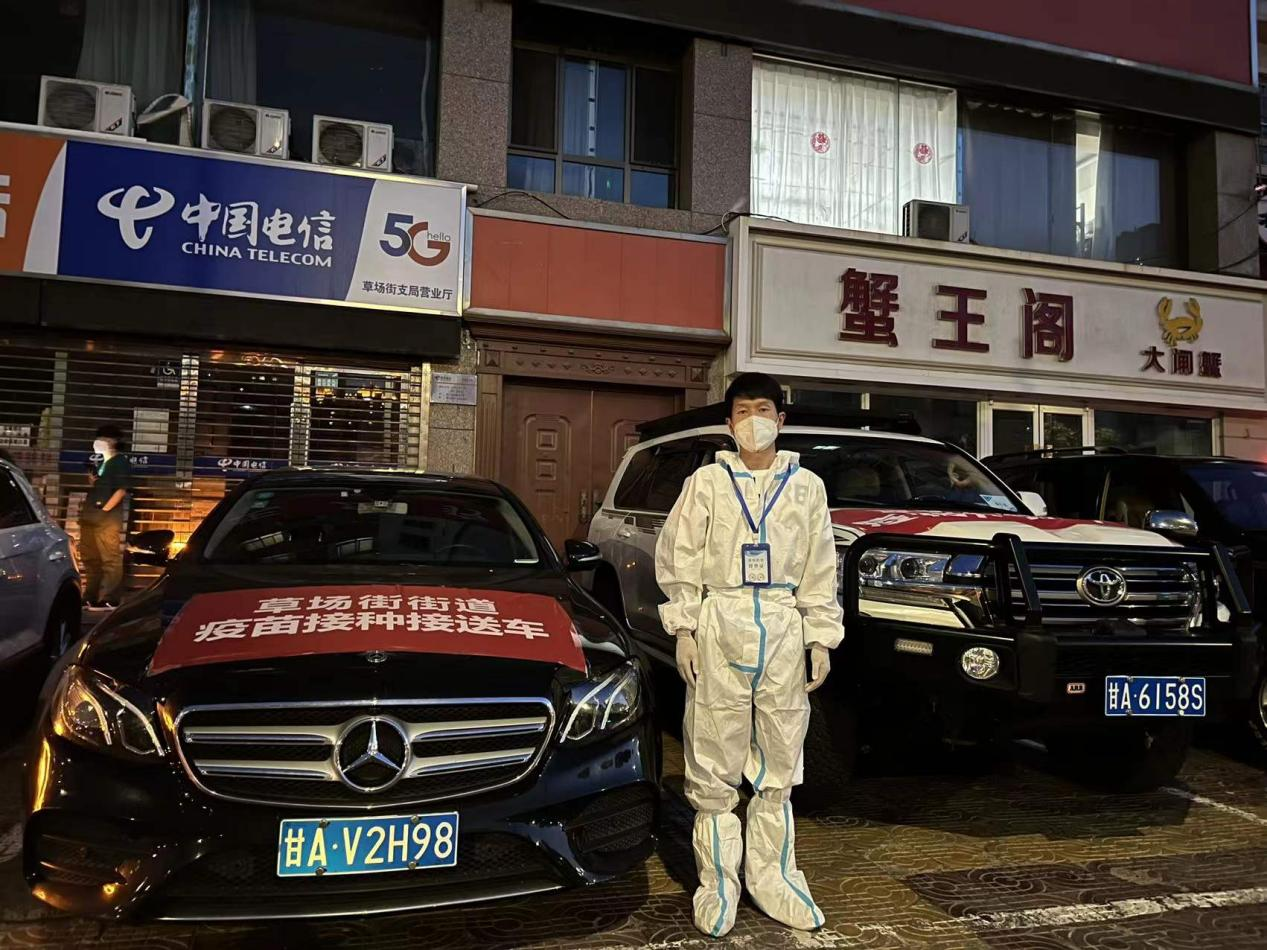 张文庆作为草场街街道爱心车队的“老司机”,他的任务就是每天开着私家车以“一个采样点一辆车”的模式护送“大白”上下班,正常的工作时间是下午两点到第二天凌晨两点,如果遇到紧急情况,工作到天亮也是常有的事情。“医护人员非常辛苦,能为他们做点什么,我很开心”。每次接送任务结束后,张文庆都会对车辆进行认真地清洗和消毒,还会在车里准备一些矿泉水和小零食。接送中虽然看不到彼此模样,但却依然能够感受到对方最真挚的微笑。危难时刻,许许多多的张文庆们为城市开辟了一条尽快恢复“烟火气”的宝贵通道。