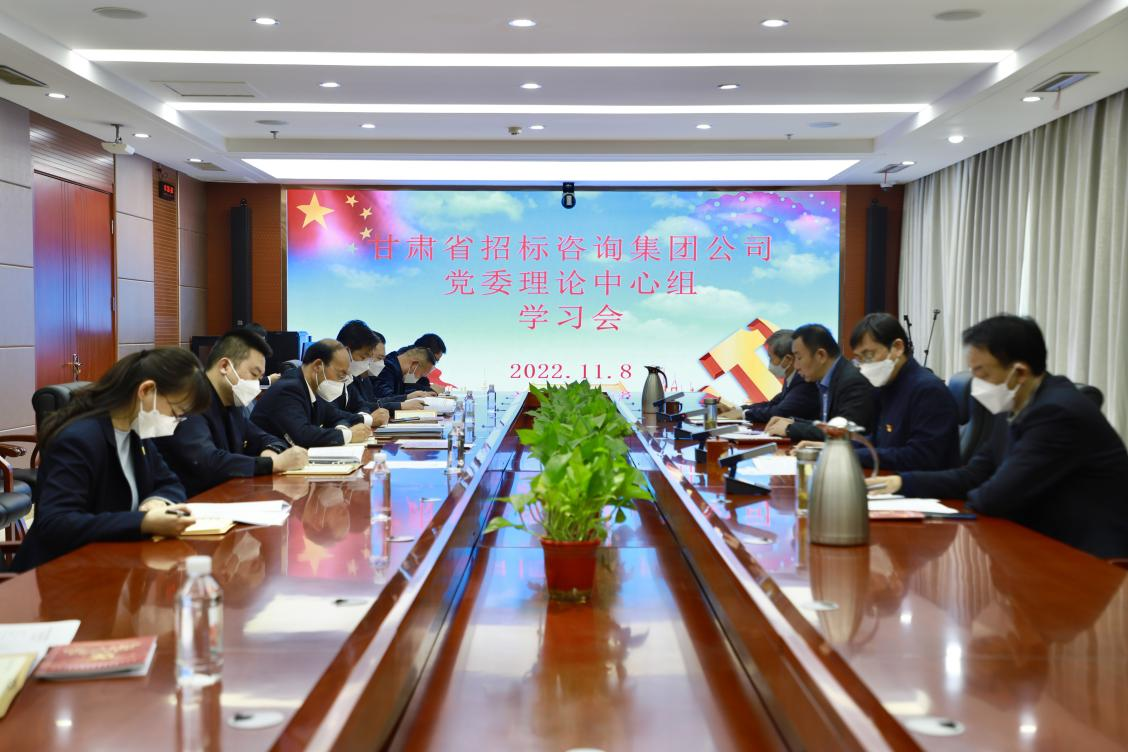 党的二十大胜利召开以来,甘肃省招标咨询集团有限责任公司党委高度重视,将学习宣传贯彻党的二十大精神作为当前和今后一个时期的首要政治任务,通过多形式、全覆盖的方式,积极抓好贯彻落实,持续推动党的二十大精神转化为加快各项工作高质量发展的强大动力,努力促使党的二十大精神在招标咨询集团迅速落地生根、开花结果。