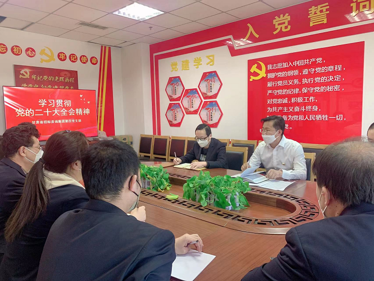 抓好专题学习,坚持学深悟透。招标咨询集团第四党支部所属金安公司采取“线上+线下”方式组织党员干部学习党的二十大精神,引导党员干部不断筑牢政治意识,提升政治素养。全体党员围绕学习党的二十大精神,分享心得体会,大家表示,要将党的二十大精神转化为推动工作的强劲动力,以更加饱满的热情、更加昂扬的斗志、更加务实的作风,在新的赶考路上交出优异答卷。