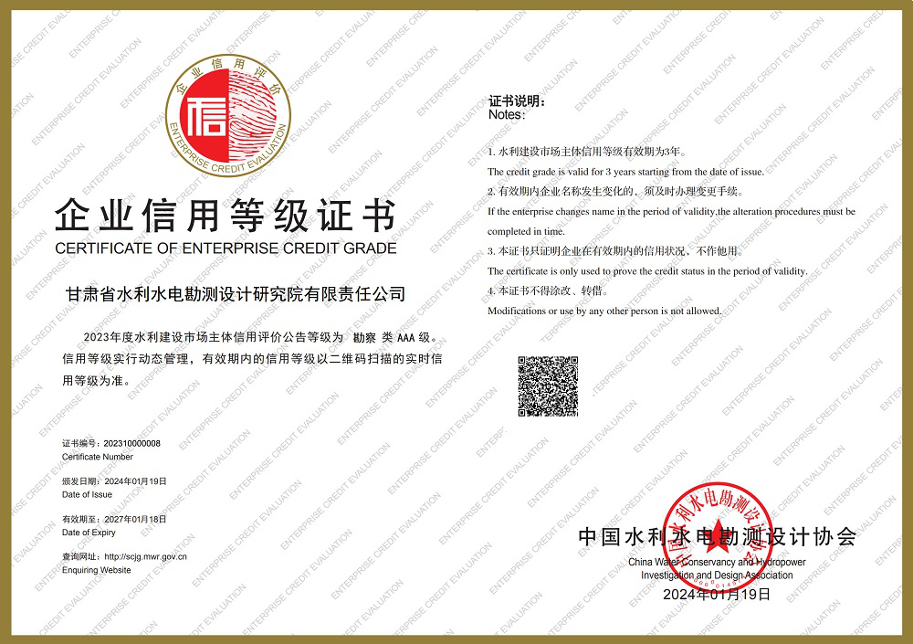 日期: 2024年01月30日|来源: 甘肃省水利水电勘测设计研究院有限责任公司| 字号:【 |打印