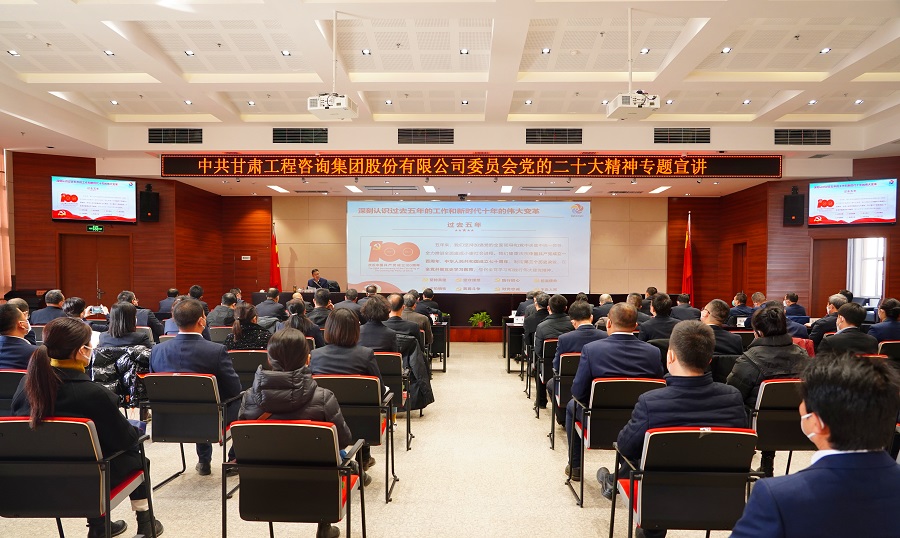 马明指出,党的二十大报告中的很多新部署新要求都与国企发展息息相关,希望集团公司广大党员干部职工深入学习党的二十大精神,加深理解、坚定信心,始终胸怀“两个大局”,站位全省高质量发展大局,主动融入“一核三带”区域发展格局,对标“四强”行动,做足“五量”文章,为中国式现代化陇原篇章贡献“甘咨询”智慧和力量。